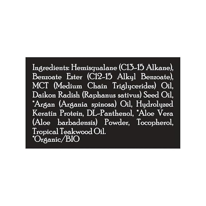 - Key Ingredients: Natural and Organic ingredients, including: Argan Oil, Hydrolized Keratin Protein, and Vitamin E