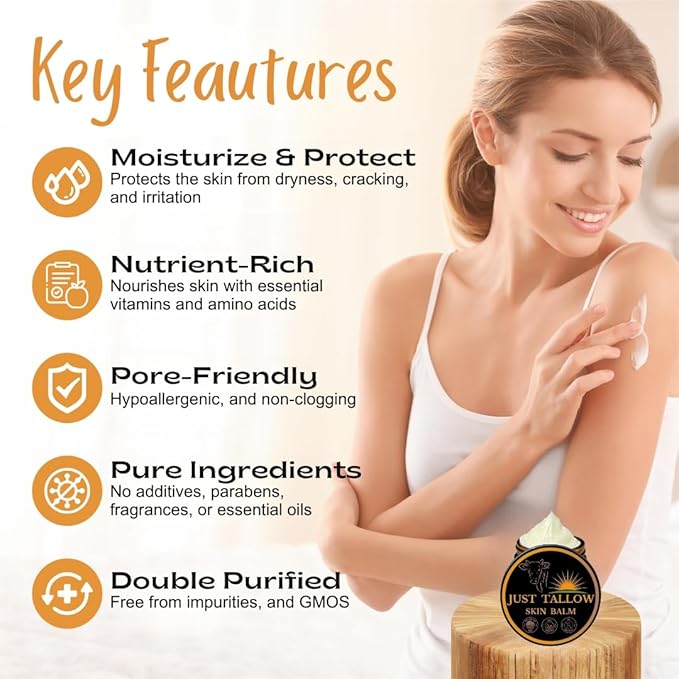 - PREMIUM QUALITY: Crafted from 100% pure, unscented, high-quality, natural skin-grade grass fed grass finshed beef tallow, and Organic Raw Beeswax