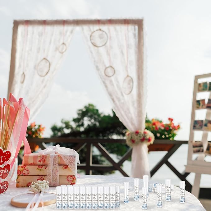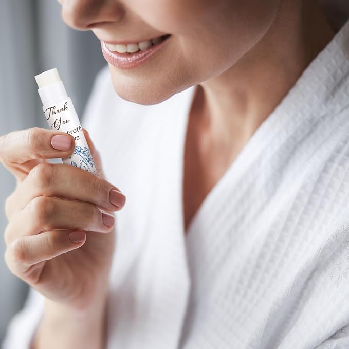 Dunzy 50 Pcs Thank You Gift Lip Balm Bulk Baby Shower Party Favors Bridal Shower Favor Lip Care with Assorted Fruit Flavors Thank You Lipstick for Guest Basket Gift Stuffer (Blue and White Porcelain)
