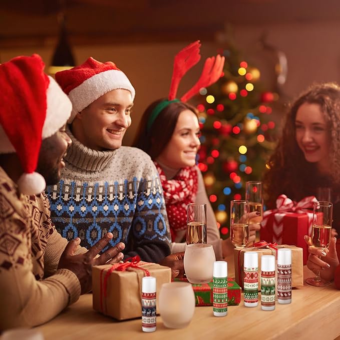 Dunzy 50 Pcs Lip Balm in Bulk Christmas Gift Set Moisturizing Lip Ugly Sweater Baby Shower Party Favor Supplies with Assorted Fruit Flavors for Women Men Dry Chapped Lips Holiday Gift Prize