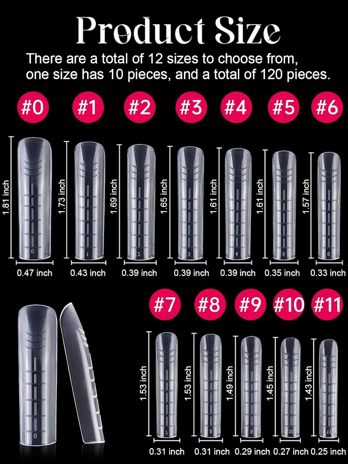 - 【Nail Form Mold with 12 Sizes】120pcs clear nail forms offers 12 different nail sizes , and each size of long nail tips is separated by a small grid, a total of 12 grids, so they're easy and convenient to choose the suitable size to meet your nail's need.