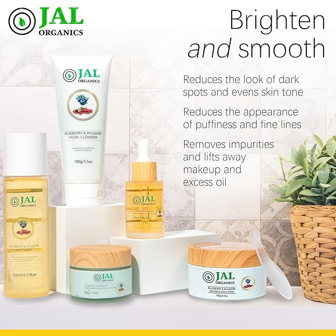 - ๐ฐ Maximize Your Skincare Investment with A Smart Choice: Investing in the Jal Organics 5-piece Blueberry Rhubarb Skincare system is not just a purchase, but a smart move. Enjoy a comprehensive skincare routine without breaking the bank, thanks to our perfect blend of high-quality ingredients and multiple products. Witness the transformative effects of our premium skincare system as you indulge in cost-effective skincare luxury.