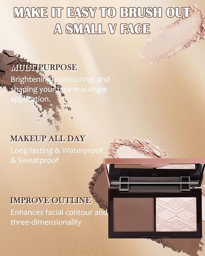 - 2 IN 1 FACE MAKEUP PALATTE SET - There are 4 kits to choose, include contour & highlighter, contour & blush and 2colors blush. This highlighter, bronzer and blush combo instantly sculpts, defines, and highlights in one sweep. Each duo has two levels of intensity for color that compliments every skin tone.