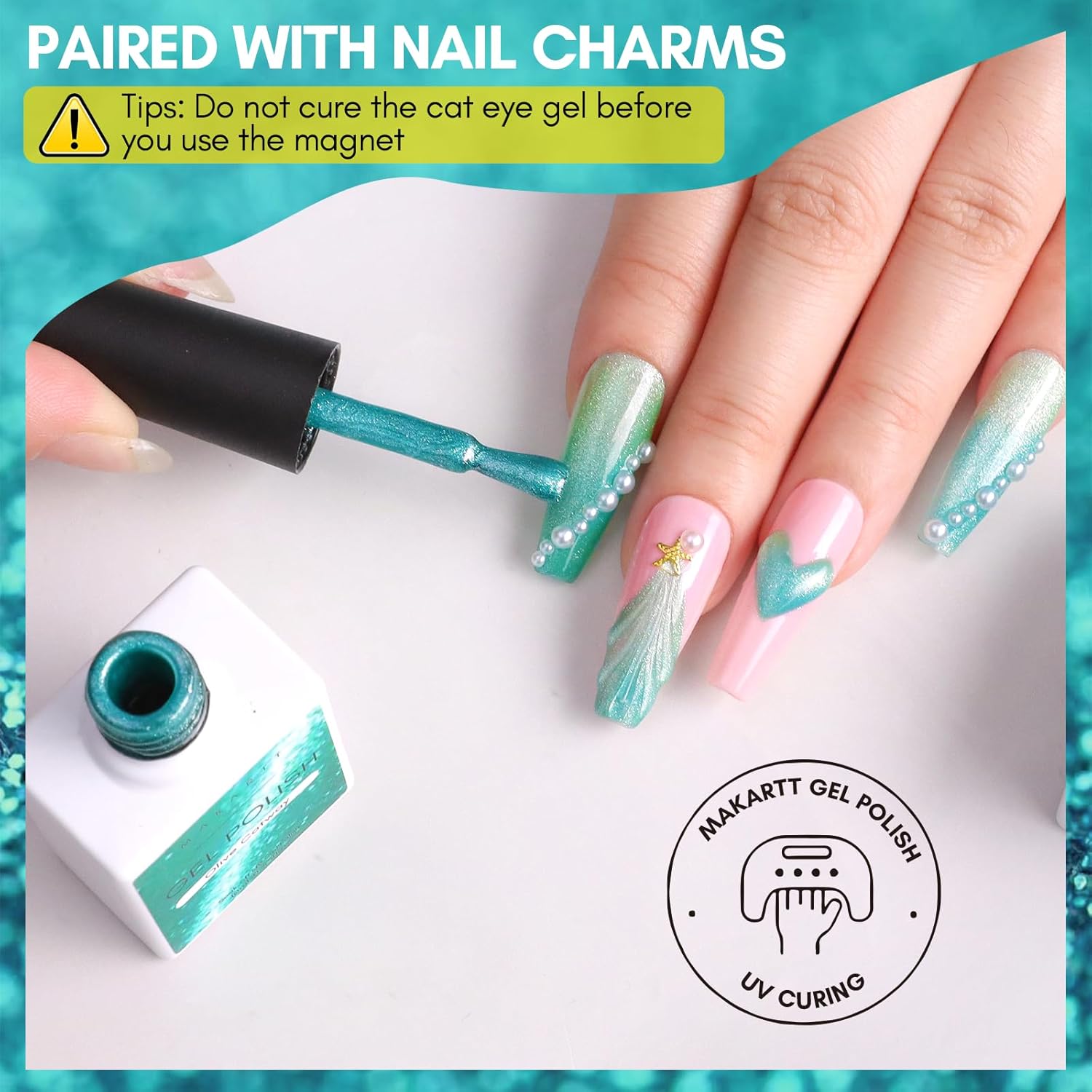 - 【Warm Note】Not cure the cat eye gel before you use the magnet, otherwise, it will not form the Cat's eye effect. Please do not proceed until you are satisfied with the result. Avoid contact with eyes, mouth, and skin. If you have any questions about the Makartt magnet gel nail polish, please do not hesitate to contact us