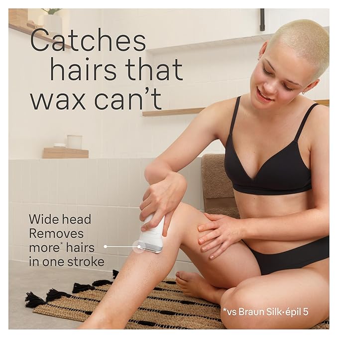 - EFFICIENT: the wide head removes more* hair in one stroke. The epilator catches short hairs (0.5mm) that wax can't*vs Braun Silk Epil 5