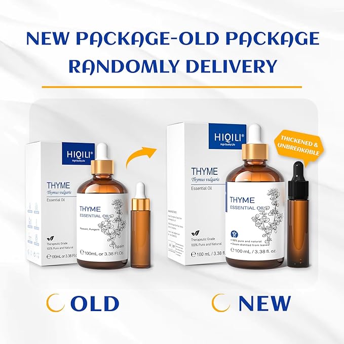HIQILI 3.38 Fl Oz Thyme Essential Oil, 100% Pure Undiluted for Hair, Skin, Diffuser, Aromatherapy, Includes 10ML Travel Bottle - 100ML