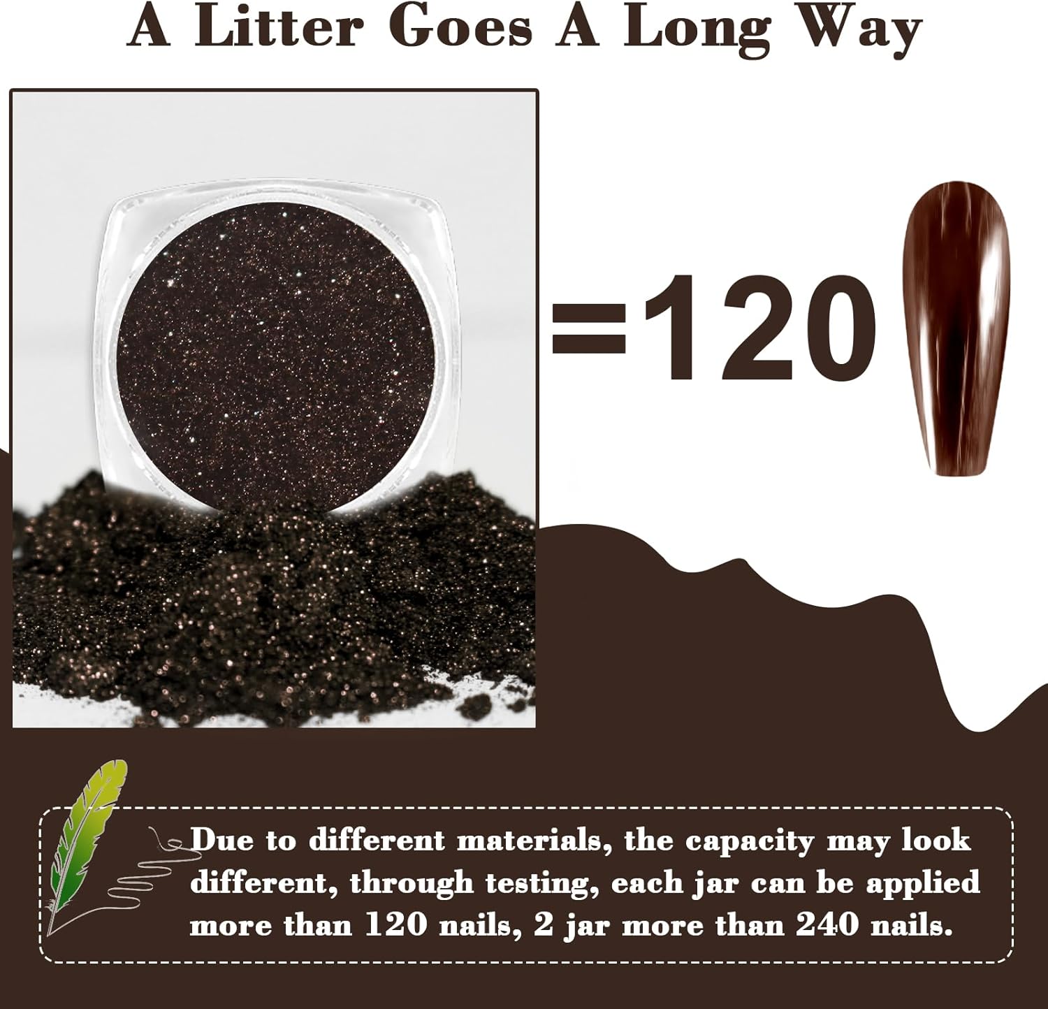 Allstarry Brown Chrome Nail Powder, 2pcs Metallic Mirror Effect Dust Glitter Glazed Manicure Decoration Reflective Pigment for Gel Polish Nail Art Decoration Resin Craft, Festivals - Dark Coffee
