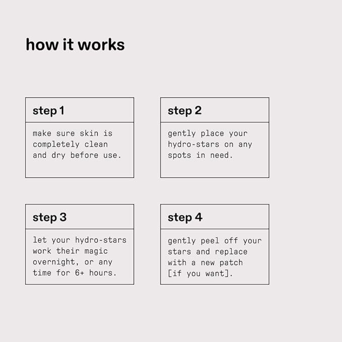- EASY TO USE: Always apply to clean, dry skin (after cleansing and before moisturizing). Replace with a new star in the morning, or after 6+ hours.