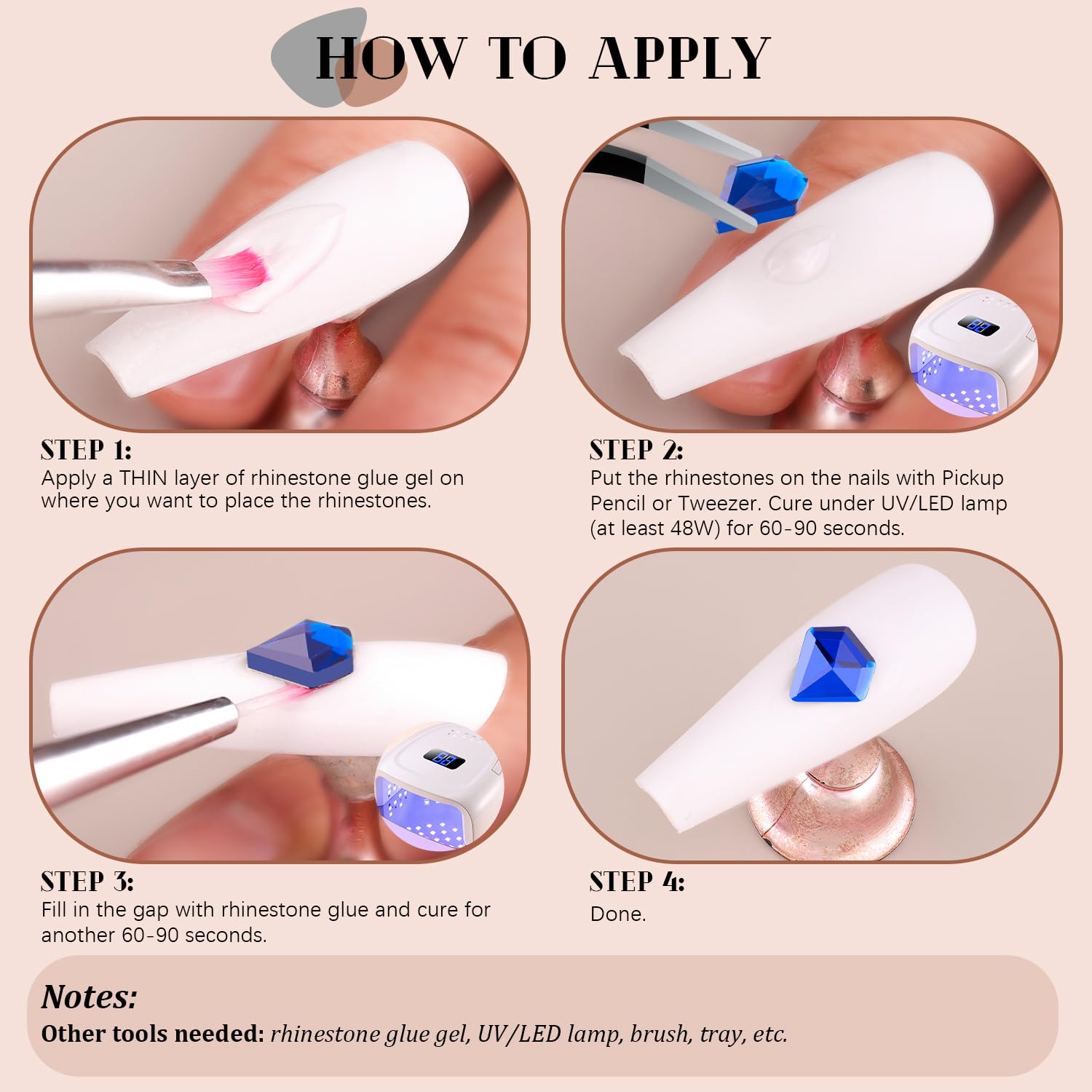 - Included Components : Nail Rhinestone, Tweezer, Pickup Pen