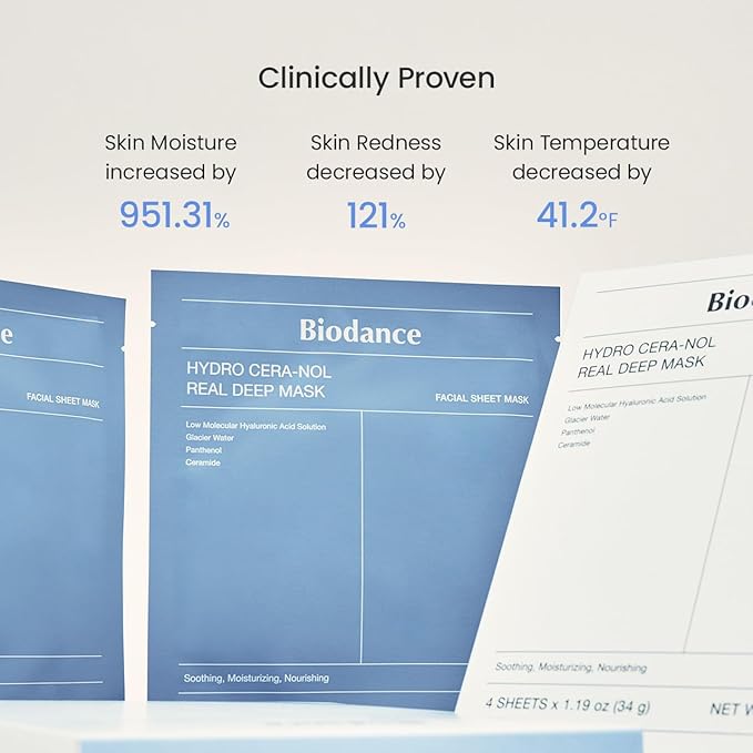 BIODANCE Hydro Cera-nol Real Deep Mask, Overnight Hydrogel Mask, Hydrating Facial Mask For Sensitive Skin, Redness Reducing & Quick Soothing Effect, Korean Skincare | 1.19oz(34g) x 4ea