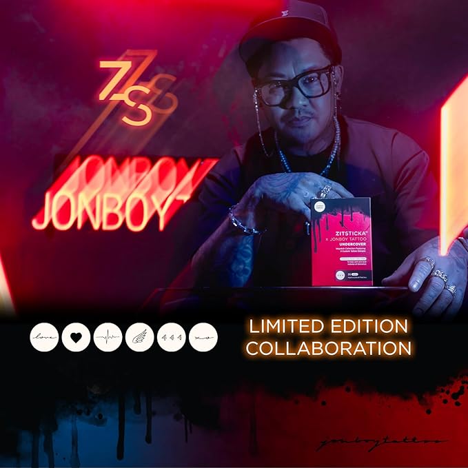 - LIMITED EDITION COLLABORATION: Discover the exclusive ZitSticka x Jonboy InkPatch Collection temporary tattoos, a custom collaboration with celebrity tattoo artist Jonboy. Featuring four unique Jonboy tattoo designs, these patches celebrate self-acceptance and positive mental health, merging skincare with art in a way thatโs both meaningful and effective.