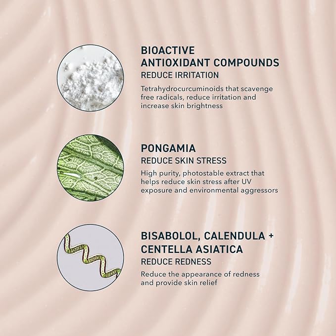 - ANTIOXIDANT SUPPORT. Features tetrahydrocurcuminoids to support skin against environmental stressors, while Pongamia Extract helps address skin stress from UV and impurities. Bisabolol, Calendula, and Centella Asiatica visibly reduce the appearance of redness for soothed skin