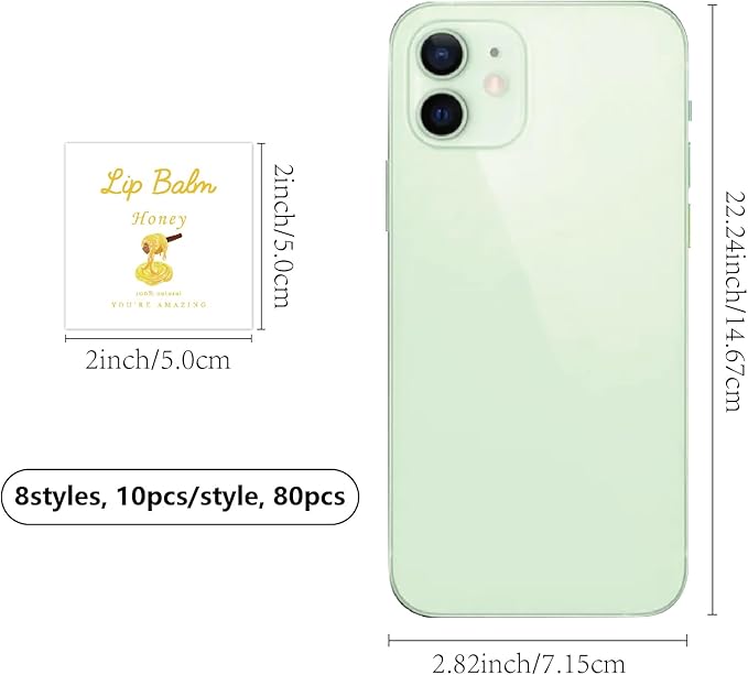 - SIZE: square custom lip balm diy label sticker about 1.96ร1.96inch (5x5cm), 8 styles, 10pcs/style, 80pcs/set.
