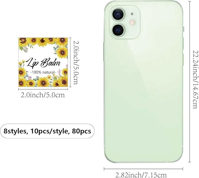 - SIZE: square custom lip balm diy label sticker about 1.96Γ1.96inch (5x5cm), 8 styles, 10pcs/style, 80pcs/set.