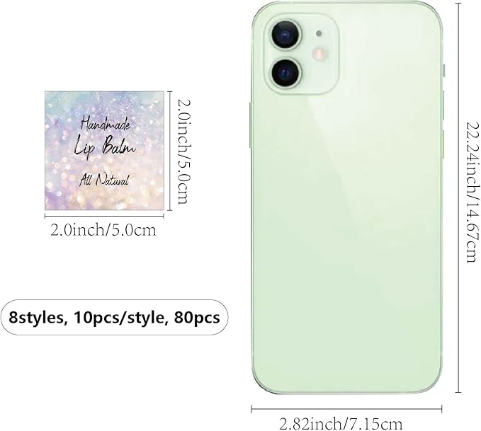 - SIZE: square custom lip balm diy label sticker about 1.96ร1.96inch (5x5cm), 8 styles, 10pcs/style, 80pcs/set.