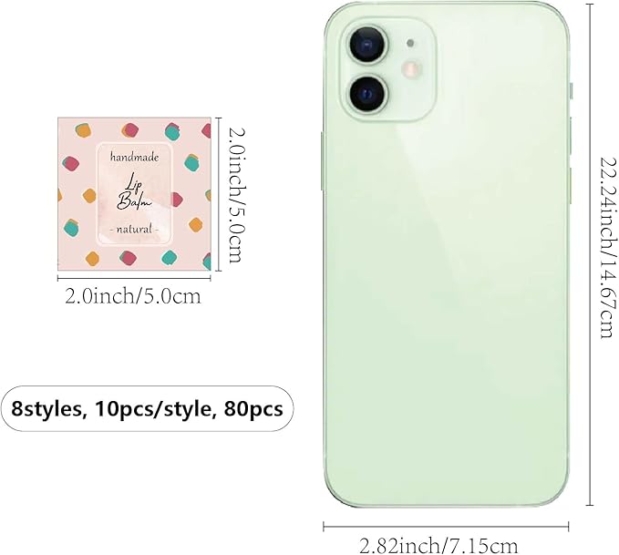 - SIZE: square custom lip balm diy label sticker about 1.96Γ1.96inch (5x5cm), 8 styles, 10pcs/style, 80pcs/set.