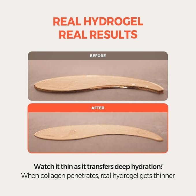 - ✅Real Hydrogel for Maximum Absorption - Made with a collagen-infused hydrogel that delivers intense hydration and nutrients to the skin while gradually thinning as it works.
