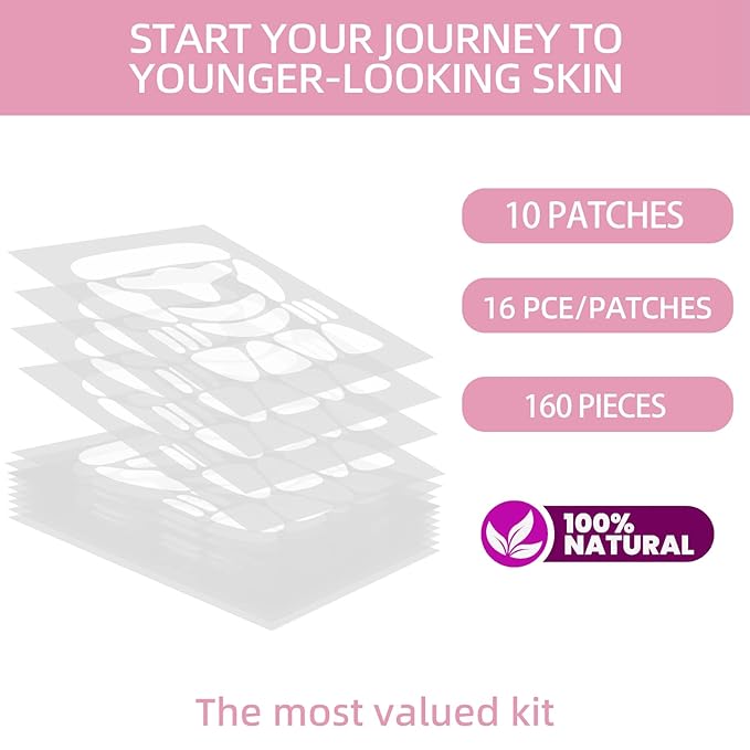 Face Wrinkle Patches – for Forehead Lines, Frown Areas, Smile Creases & Fine Signs – Overnight Anti-Aging Facial Stickers to Smooth Skin, Safe and Gentle for All Skin Types, 160 Pcs Included