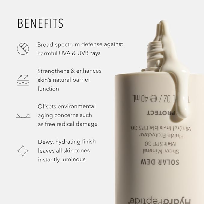 HydroPeptide Solar Dew Sheer Mineral Melt SPF30 Facial Moisturizer, Sunscreen & Primer, 1.35 Ounce