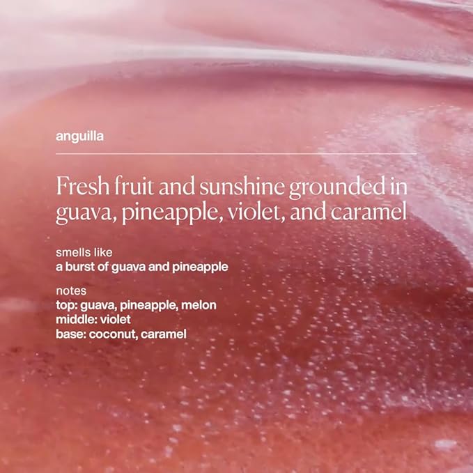 - UNIVERSAL FLAVOR AND DESIGN: Enjoy the refreshing flavor of Anguilla, a fresh fruit and sunshine-y flavor grounded in guava, pineapple, violet, and caramel.