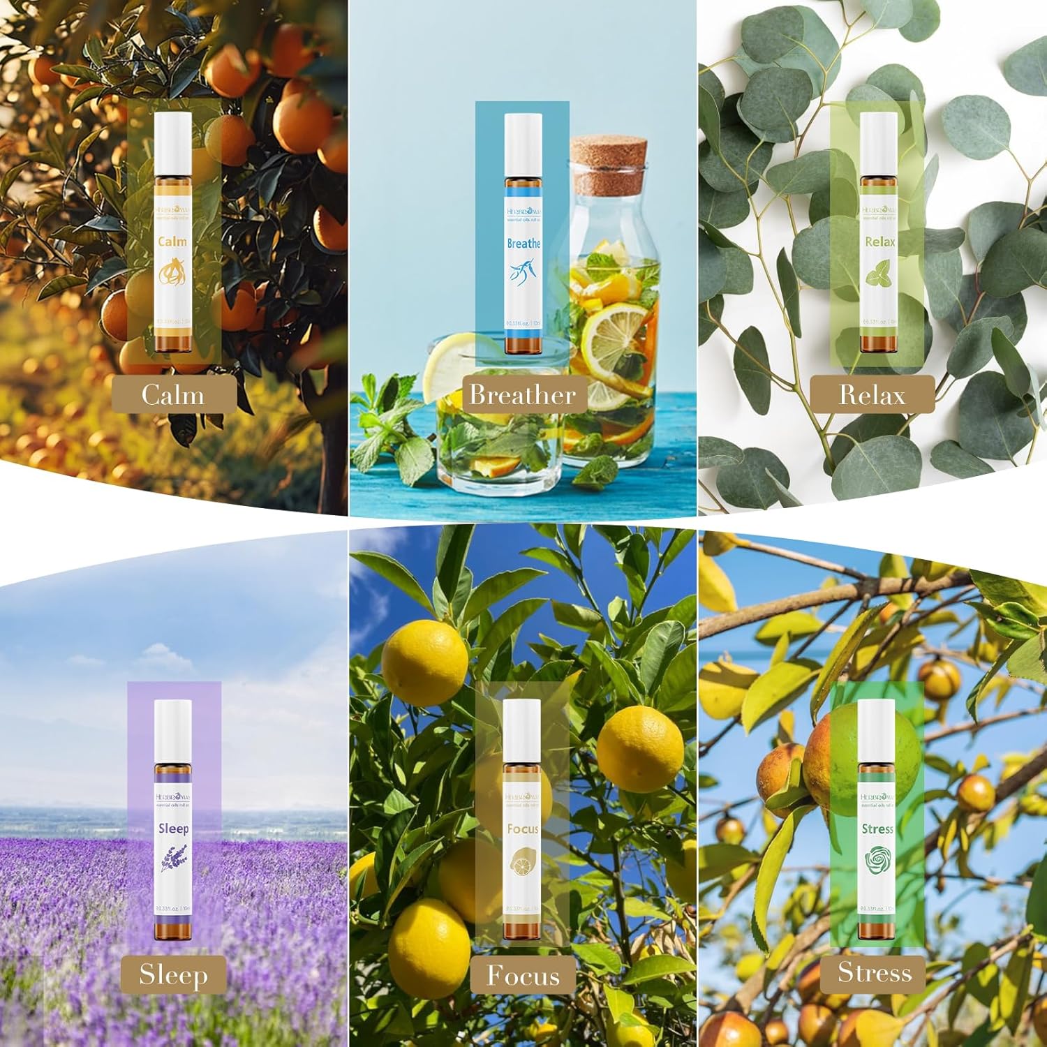 Aromatherapy Essential Oil Roll On Blend Relaxation Gift for Women, Natural and Pure Essentail Oils with Travel Size Roller Ball Bottle (Breathe, 1)