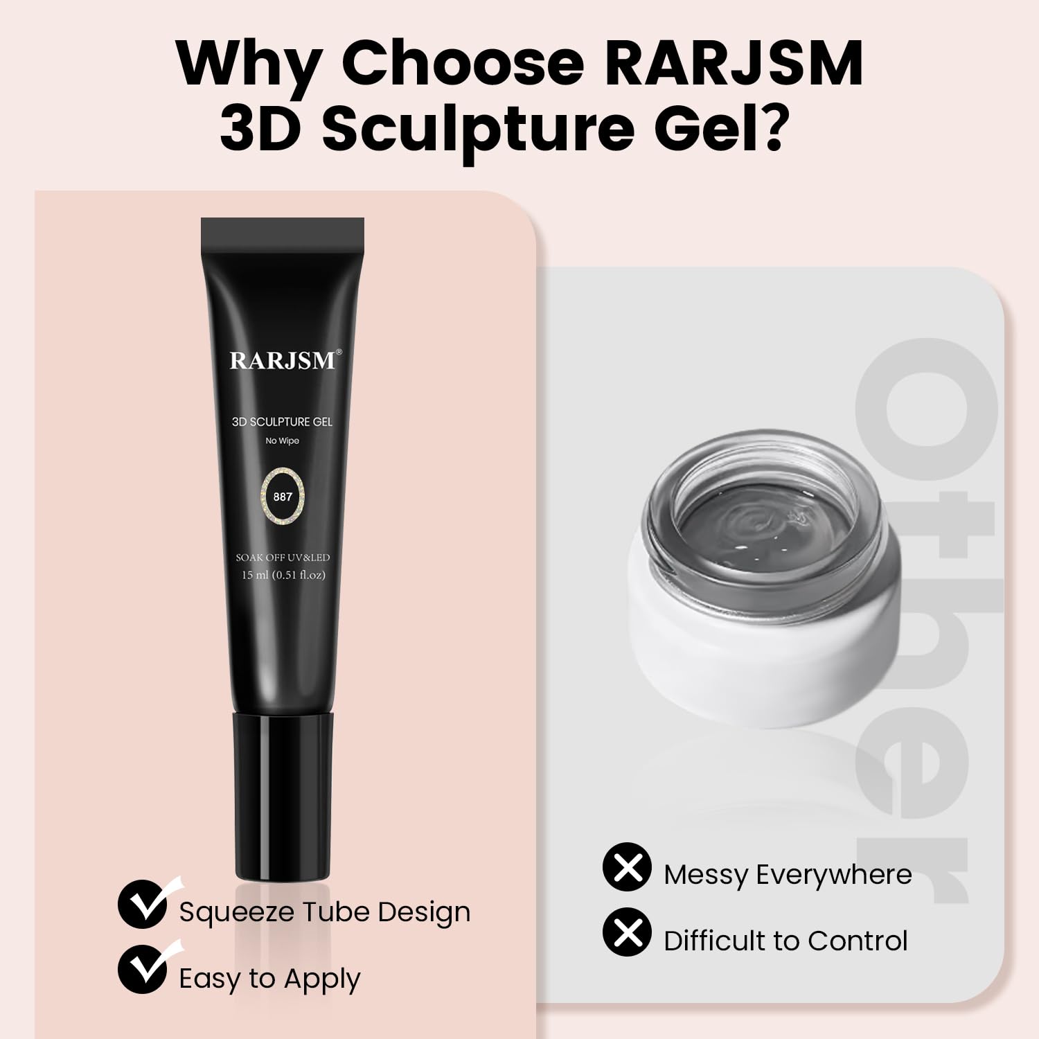 - QUICK CURING LONG LASTING: The sculpting gel is designed to cure quickly, saving time during the nail art process. This ensures that nail designs set efficiently without smudging or losing their shape. Once cured, the 3D Sculpting Gel provides a long-lasting finish