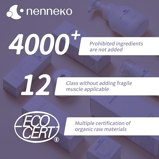 - Pure & Minimalistic: Nenneko creates a safe and streamlined formula for babies and children, without 4000+ ingredients from Europe, Japan and China which not good for baby, accompanying children through their safe childhood. Boasting over 4000+ non-added ingredients and zero percutaneous toxicity risks.