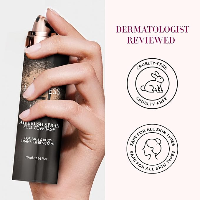 - Full Coverage Airbrush Finish: The LUMINESS Airbrush Spray Full Coverage Foundation delivers lightweight, buildable coverage for face and body, effortlessly concealing imperfections and providing a natural, airbrushed finish that lasts all day. 2.36 fl oz. Shade 040 - Medium