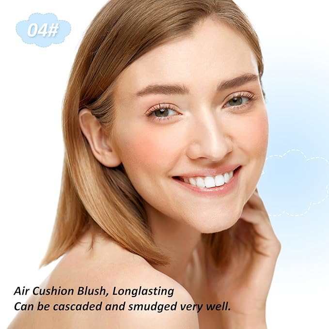 Boobeen Powder Blush for Cheeks, Air Cushion Matte Blush, Natural Highly Pigmented Blush Makeup Easy to Blend, Loose Blush Compact Long-lasting