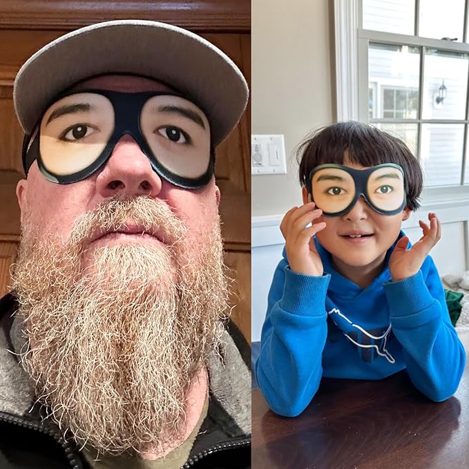 - Soft, comfortable to wear, and will not leave any marks on your face, you can even open your eyes behind it. Funny design, you can pretend to be awake when you're asleep