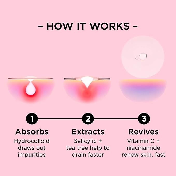 - ADVANCED INGREDIENT INFUSED FORMULA: Our hydrocolloid patches are supercharged with acne-fighting ingredients (which many other pimple patches donโt include!) Salicylic Acid penetrates pores to clear out gunk, Niacinamide reduces inflammation and redness, and Tea Tree provides natural properties. This potent combination works together to help breakouts, giving you clearer, healthier-looking skin.
