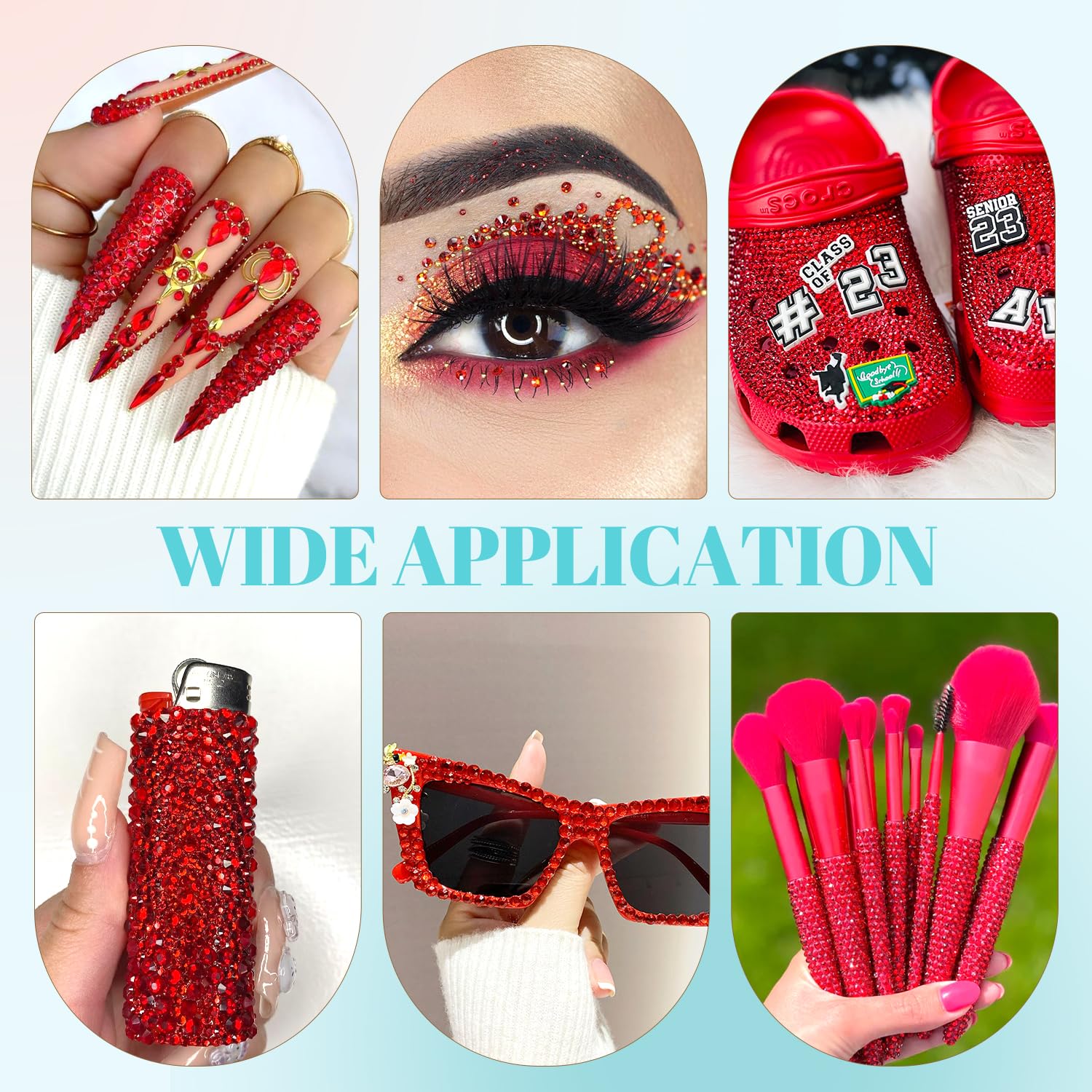 - 💎WIDE APPLICATION -- These sparkling iridescent resin crystals are perfect for creating dazzling looks. Use them for bedazzling DIY crafts like shoes, tumblers, mugs, bottles, phone cases, popsockets, scrapbooks, photo frames, diamond paintings, greeting cards, bags, glasses, guitars, keychains, hats, masks, hair clips, bracelets, wristbands, clothing, wedding dresses, and more. Apply it to what you want to bling!