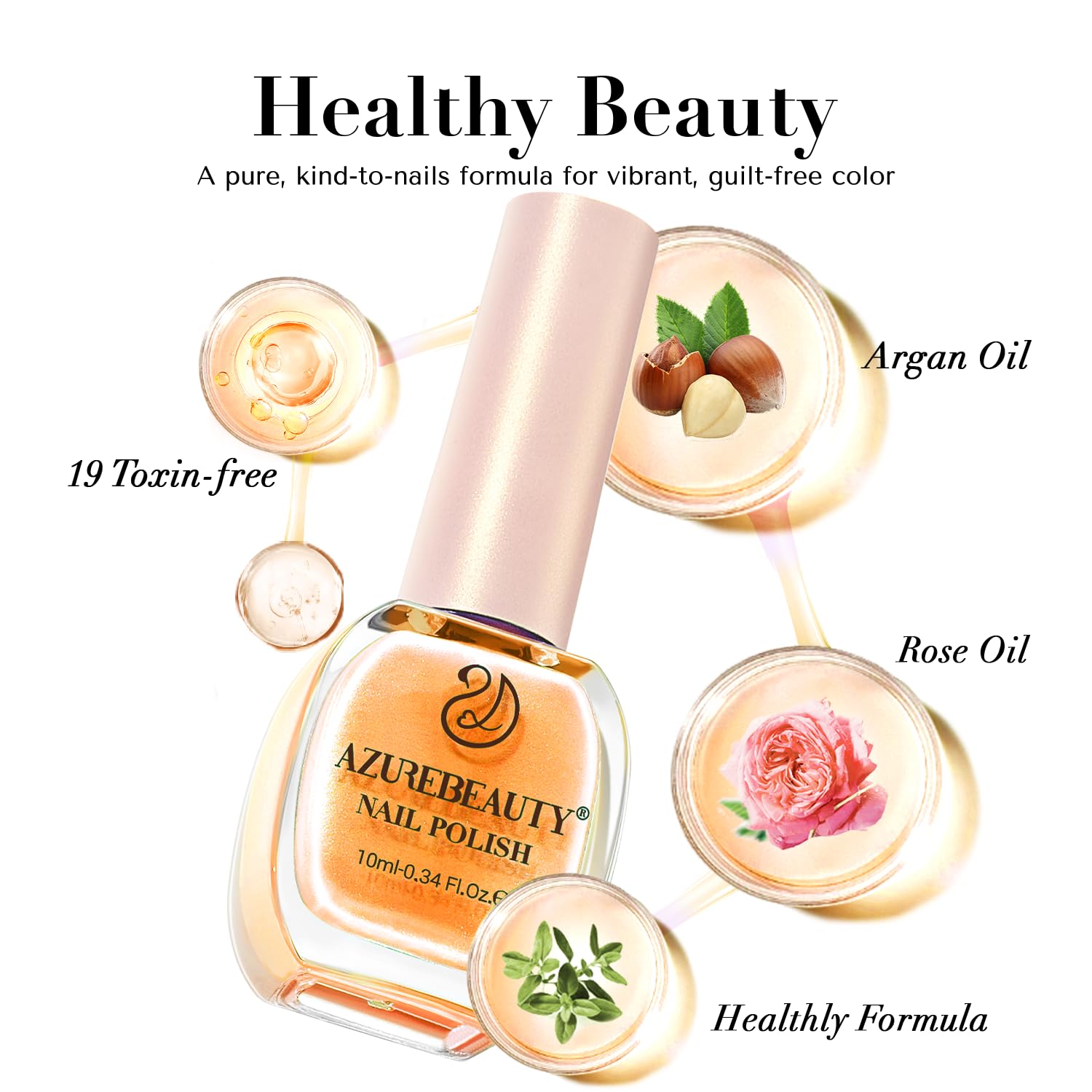- Upgraded Health Formula & Low Odor: AZUREBEAUTY nail polish kit adds a nail strengthener for a firmer manicure. High purity color paste color uniformity, no need to brush repeatedly color. Added nutrients like vitamin E, healthy, low odor, and no nail-damaging irritating ingredients or adhesives to protect your nails