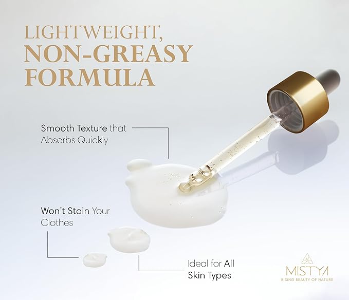 - Package Includes: 1 bottle of Mistya Specialized Face and Neck Serum (30 ml / 1 oz) – perfect for daily use on the face, neck, and chest. Suitable for all skin types, especially dry and mature skin.