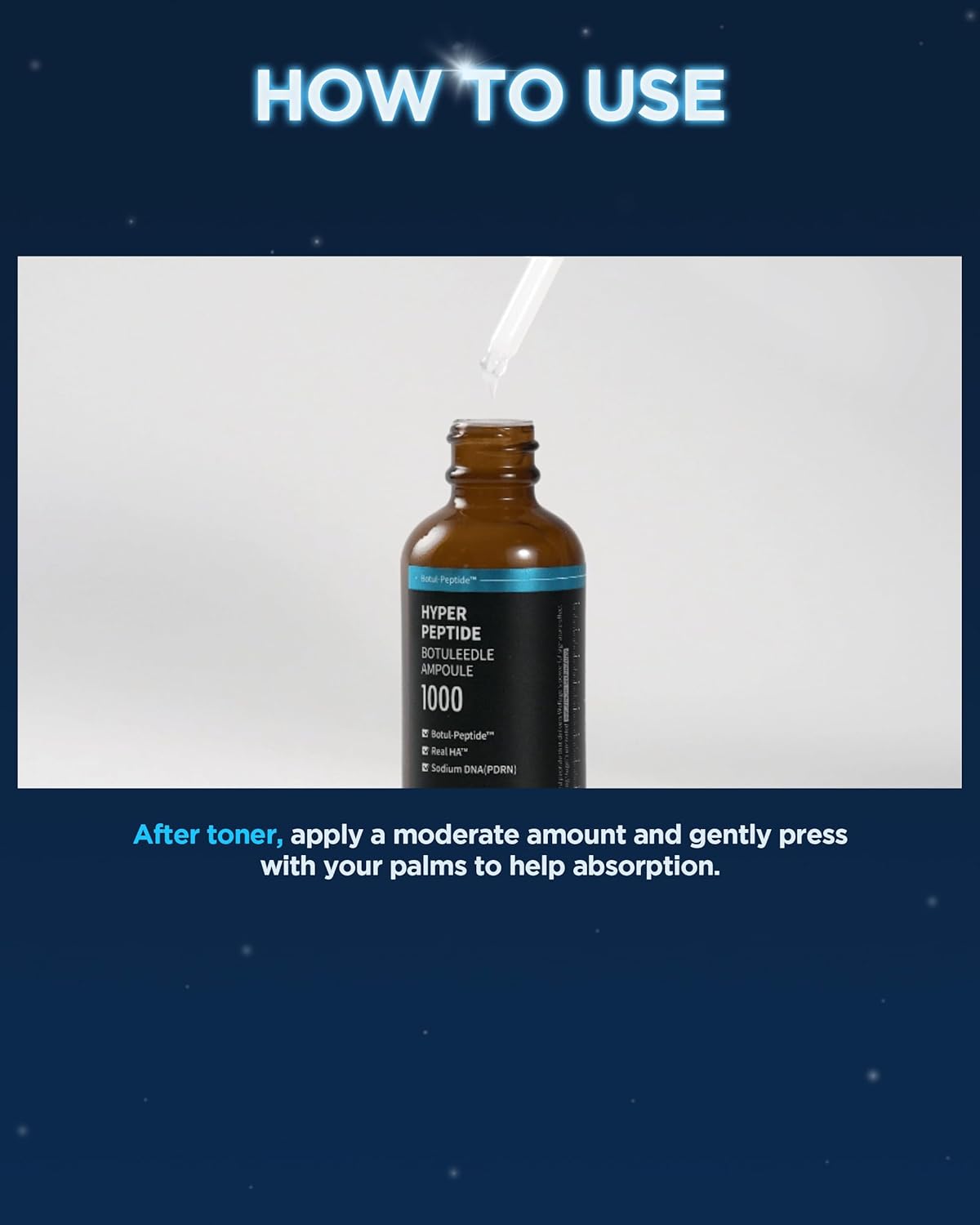 WELLAGE Hyper Peptide Botuleedle Ampoule, Korean Anti-Aging Serum with Infused Peptide, High Purity of Hyaluronic Acid, PDRN, Panthenol, Squalane - Pore Elasticity, Plumping Skin, 1.69 fl.oz.