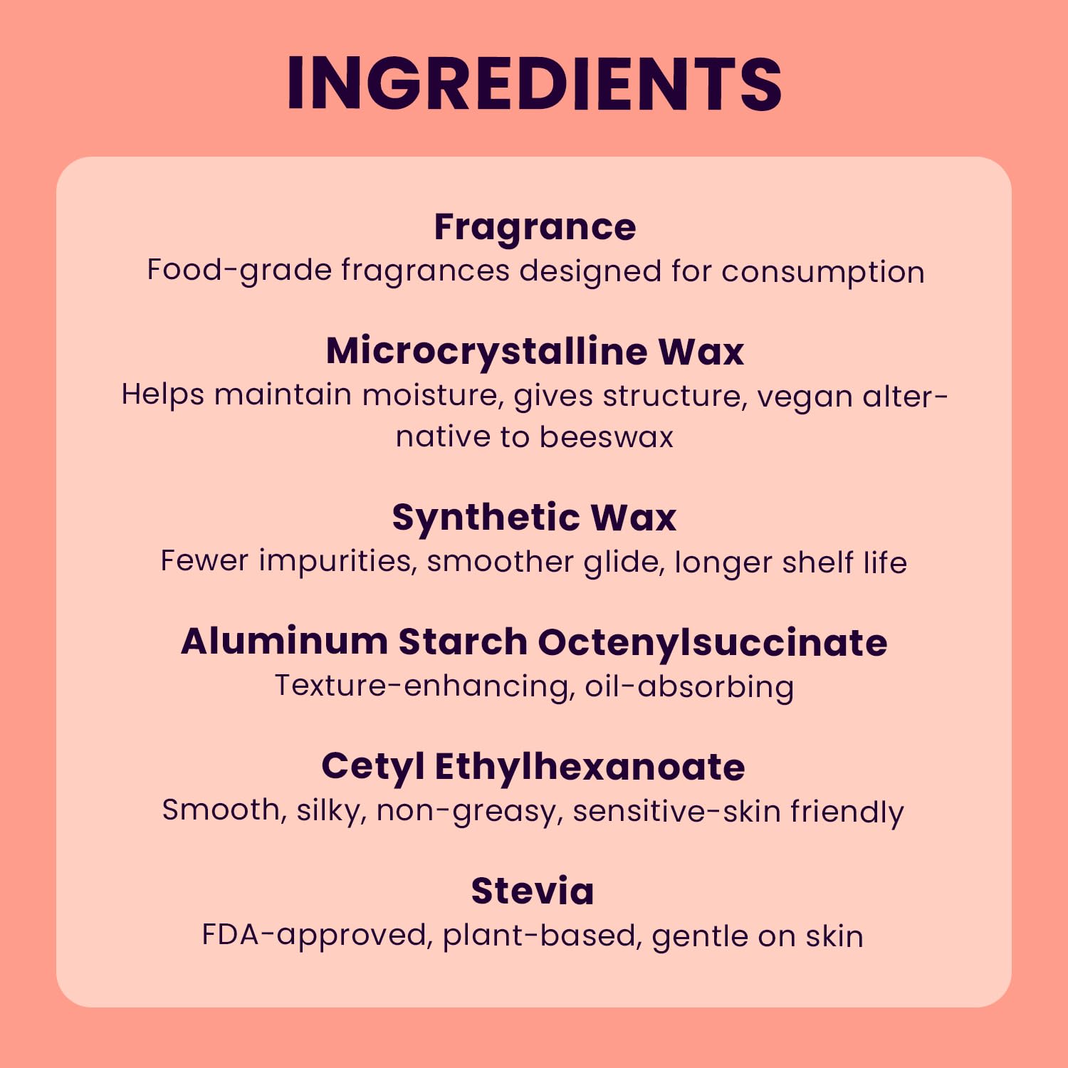 - Long-Lasting Wear, Sweet Finish – Designed to keep up with you. This solid stick delivers a long-lasting scent with a flavor that lingers on lips, pulse points, and anywhere you normally apply perfume