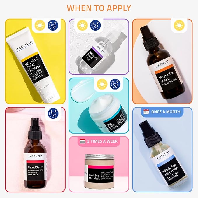 - Total Skincare Set: YEOUTH Vitamin C Cleanser, Face Toner, Vitamin C Face Serum, Retinol Serum, Face Cream, Face Peel & Face Mask. Owned by a Cosmetic Chemist. Dermatology Tested. Proudly made in USA. Enjoy a complete skincare routine from YEOUTH!