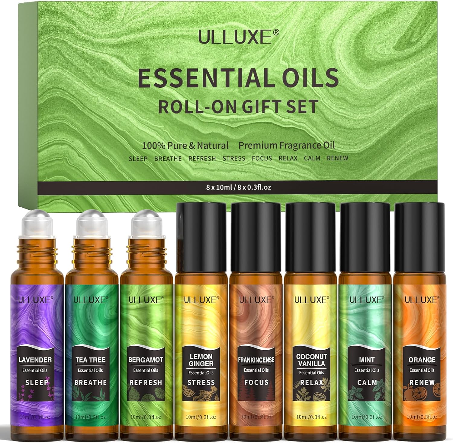 Essential Oils Roll On Set (8 Pack) 8 Scent, Essential Oil with Roller Ball, Natural Aromatherapy Oil for Skin, Stress Comfort, Calming, Relaxation Self Care Gift Set for Women and Men