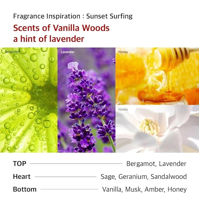 - [INDULGENT SCENT] Enjoy the luxurious and comfort Vanilla Woods fragrance that lingers pleasantly after each use. Discover the key notes of Vanilla, Sandalwood, Bergamot and Lavender.