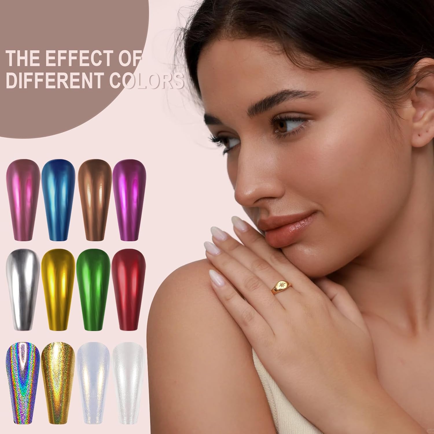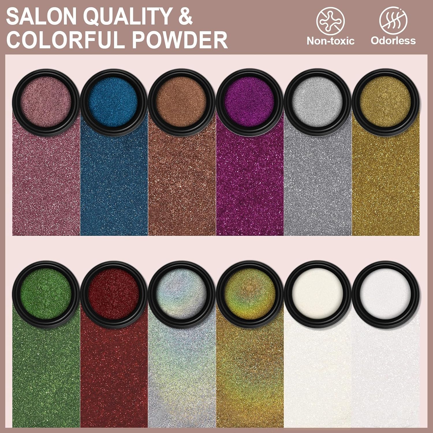 - QUALITY AND QUANTITY :Each jar has 1 gram of powder, instead of just a little bit per jar. Artdone chrome nail powder has very good shining mirror effect, they can made different effects with different background colors. If you need a darker color, you can choose black or another dark color as the base color, if you need a lighter color, you can choose a whiteγpink or transparent base color to applied powders