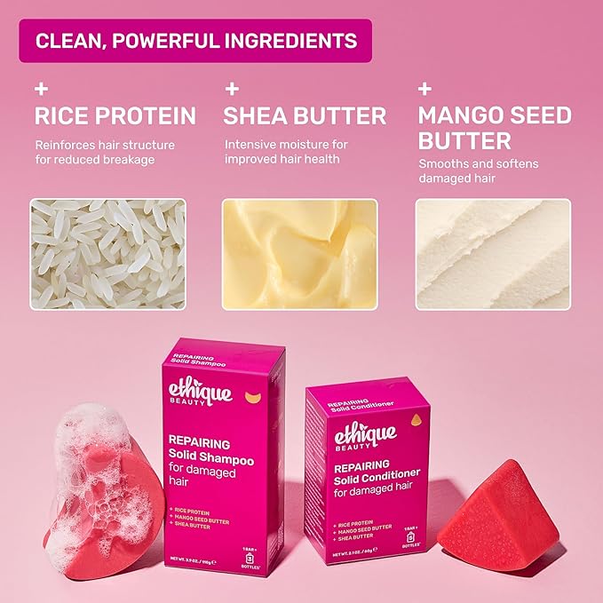 - REPAIR & REVITALIZE: Transform dry, damaged hair with our Repairing Conditioner Bar! Infused with rice protein to reinforce hair structure and reduce breakage, mango seed butter to smooth and soften damaged hair, and shea butter for intensive moisture and improved hair health.