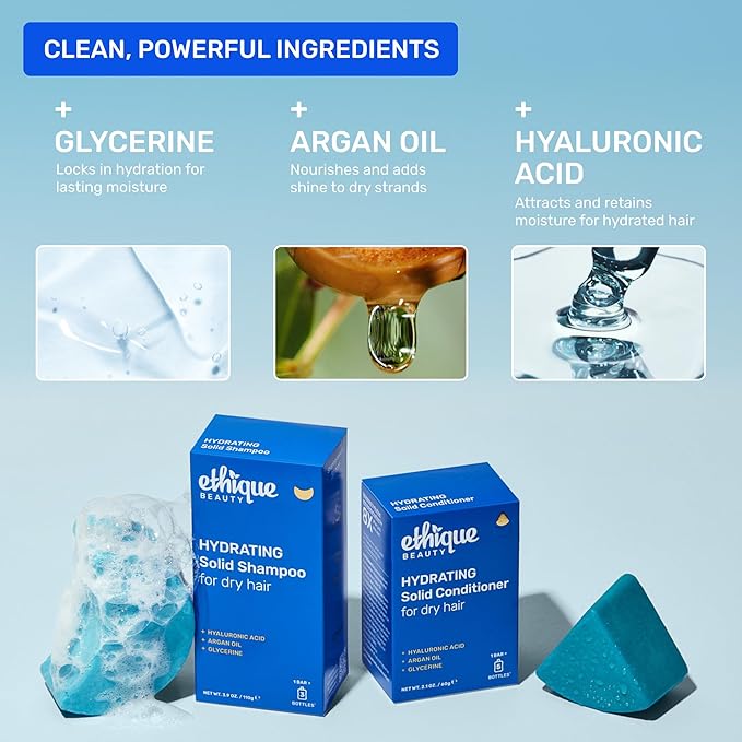 Ethique Hydrating Shampoo Bar for dry hair with Hyaluronic Acid - Plastic-Free, Cruelty-Free, Vegan, 3.88 oz