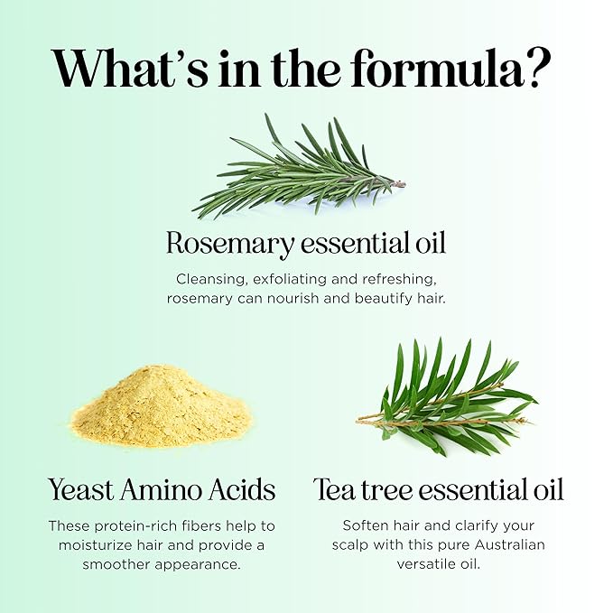 - Powered by Essential Oils - See what rosemary and tea tree essential oils can do for your hair and scalp care as these remarkable botanical extracts cleanse and moisturize to provide a clean shine