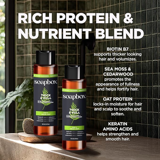 Soapbox Men's Thick and Full 2 in 1 Shampoo and Conditioner Men, Natural Mens Shampoo and Conditioner, Oak & Cedar Leaf, 16oz