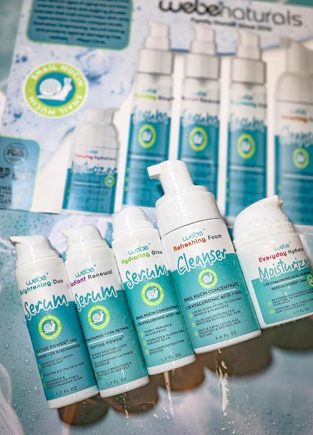 WEBE Naturals Snail Mucin 94% Hydrating Glow Serum | 1.3% Hyaluronic Acid & N-Acetyl Glucosamine | Collagen Boosting, Plumping, Anti Aging, Intense Moisturizing Serum for Radiant, Dewy Skin