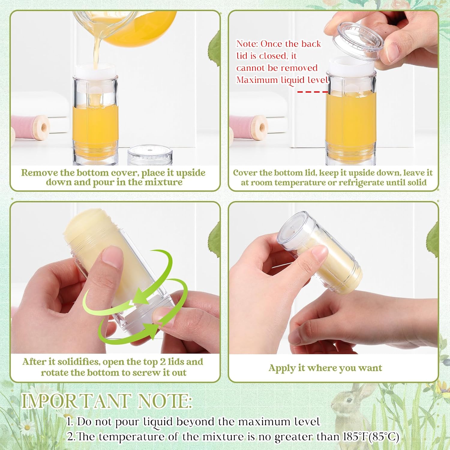 - Applications: ideal for making your own deodorant at home, and they are suitable for deodorant, solid perfume and lip balms, crayon lipstick balm, etc