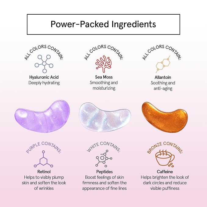 - Repair In Your Sleep - Our under eye masks for dark circles are powered by an advanced blend of sea moss, ceramide, and fatty acids that restore the delicate skin of your under eyes, so you can wake up fresh. Our gel eye mask are your new secret.