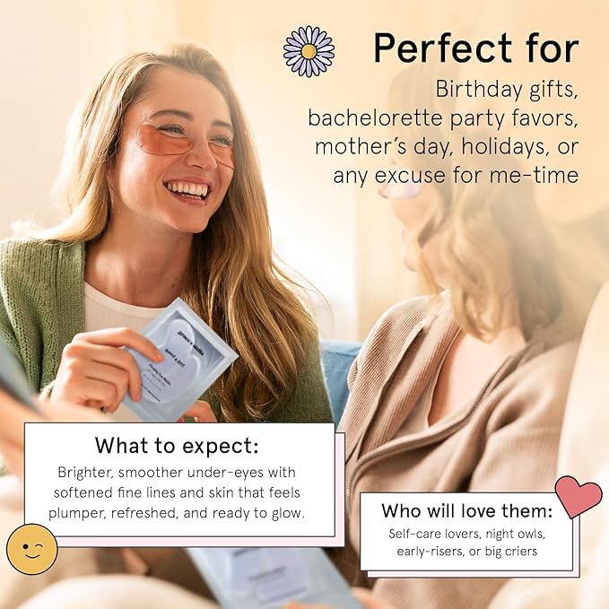- Awesome Gifts for Glow-Getters - Whether for a birthday or a bachelorette bash, you can never go wrong with our under eye patches for dark circles. Enjoy our 30-Day Feel Good Policy. If you're not 100% happy, just let us know and we'll make it right!