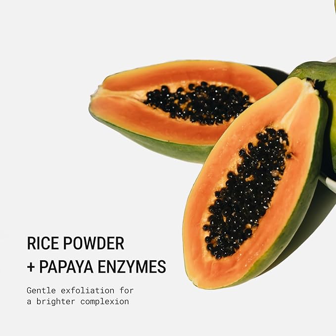 - Hydrating Cleanser: Formulated with Rice Powder and Papaya Enzymes, this facial cleanser hydrates and renews your skin while cleansing impurities
