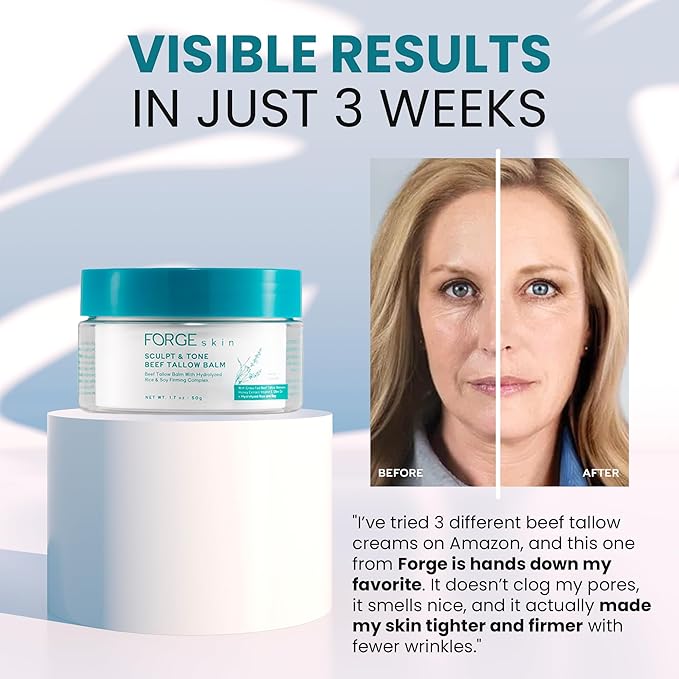 - FORGE SKIN ADVANCED ANTI-AGING FORMULA β Based supplies tallow and honey balm , this honey tallow balm triple firming neck cream helps reduce wrinkles, fine lines, and tighten skin. Designed for women, Beef tallow face moisturizer Tallow honey balm deeply nourishes and firms the skin, restoring a youthful, radiant glow. Forge grass fed beef tallow for skin tightening for neck wrinkles cream. Your anti aging triple neck firming cream skinβs daily and nightly repair processes are the building